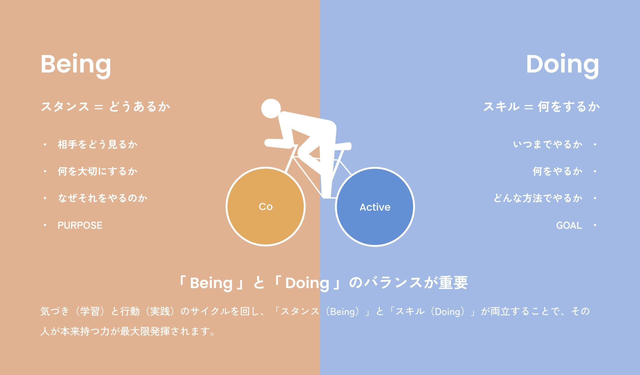 バランス自転車モデル行動と学習のサイクルで、 「スタンス(Being)と「スキル(Doing)」を両立させる。